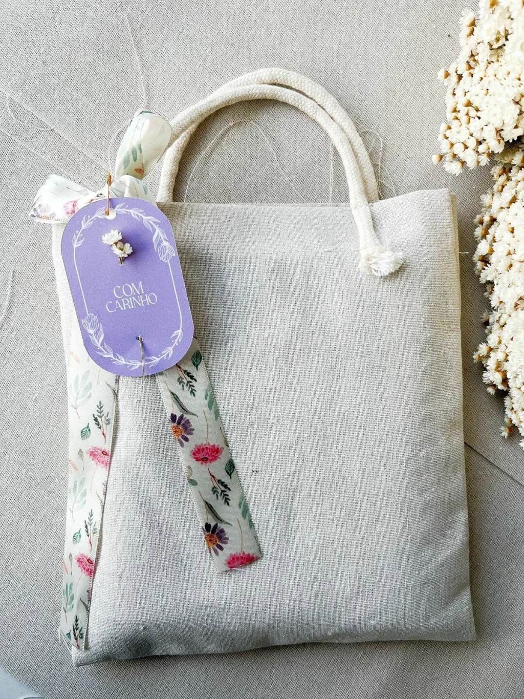 05 Sacolas Ecobags no tamanho linho na cor Natural;