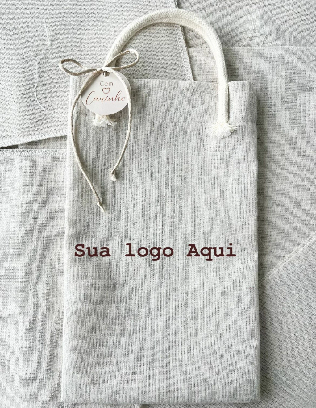 10 Sacolas Ecobags no tamanho em linho na cor Natural Estampada Com Logo Marca