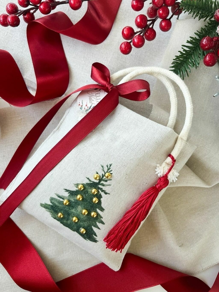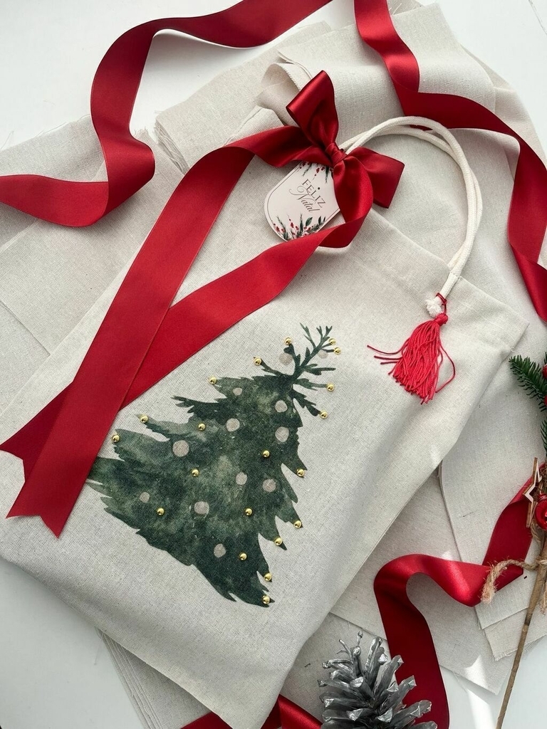 • 50 Sacolas Ecobags no tamanho linho na cor Natural Estampa Natal Pérolas luz Dourada