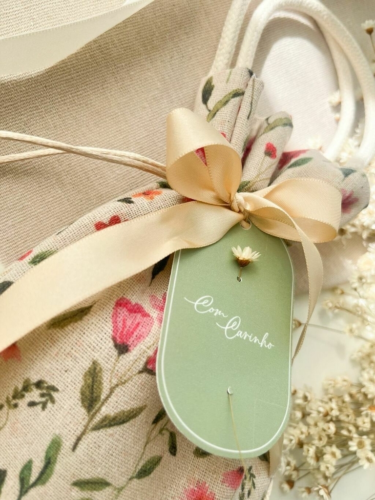 - 60 Saquinhos de puxar com alça no tamanho com a estampa: Flora